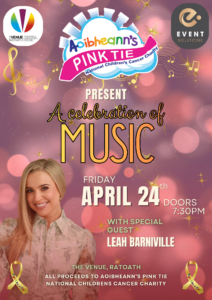 Leah’s performances are a celebration of passion, talent and pure vocal beauty which offer an enchanting experience that resonates with all. Don’t miss the chance to support the work of Aoibheann’s Pink Tie and witness this rising star and guests in a stunning, intimate live performance!